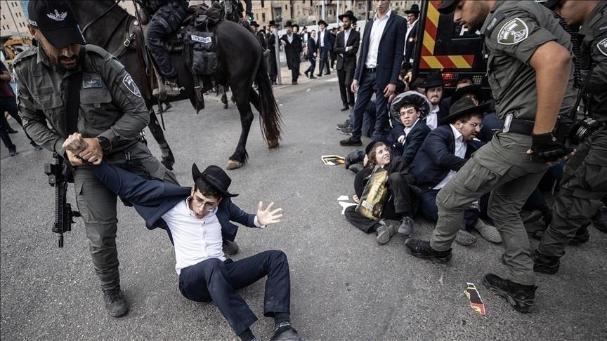 اندلعت اشتباكات، الأحد، بين الشرطة الإسرائيلية ومتظاهرين من المتدينين اليهود المتشددين "الحريديم" الرافضين للخدمة العسكرية، أمام مكتب تجنيد في القدس.